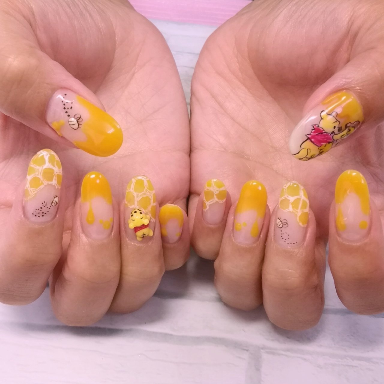Vi Yell Nailヴィエール ネイル On Instagram Pooh Disney Pooh Nailart ディズニーネイル プーさんネイル ディズニー好き Yellow Nail Naildesign ハチミツポット 蜂蜜 蜜蜂 キャラクター